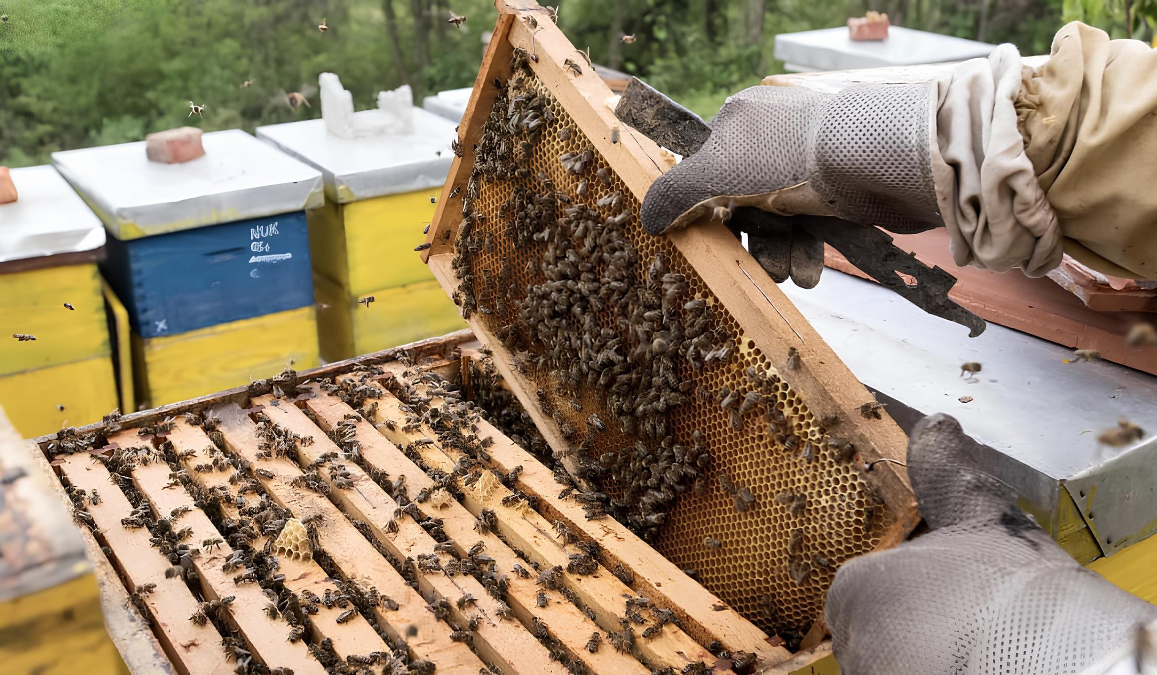 - zdravstveno stanje pčela i saća – mrlje na okvirima mogu upućivati na lošu zimsku hranu ili prisutnost bolesti;
